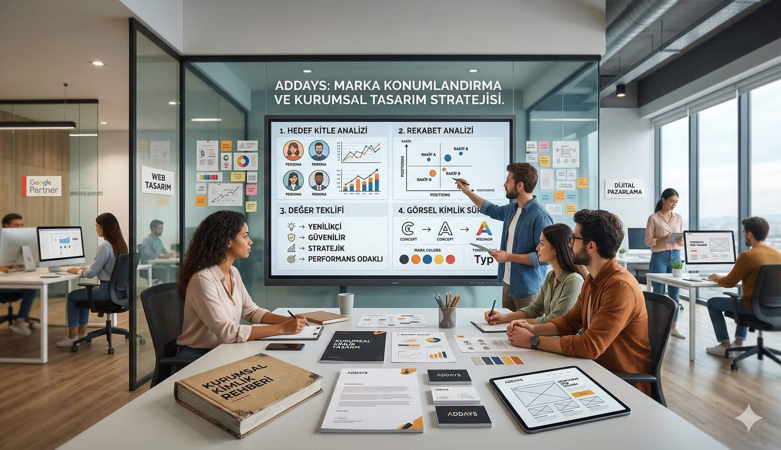 Marka konumlandırma, markanızın *ruhunu* ve *sesini* belirlerken; kurumsal tasarım bu ruhun *görünen yüzü* ve *beden dilidir*. Stratejiden yoksun bir tasarım sadece "güzel" kalır; görsel bir kimliğe bürünmeyen strateji ise "soyut" ve "hatırlanmaz" olur. İster yerel pazarda liderliği hedefleyin, ister B2B ihracat pazarlarına açılın; Addays, bu iki kritik ayağı birbirini besleyen bütüncül bir sistem olarak kurgular.